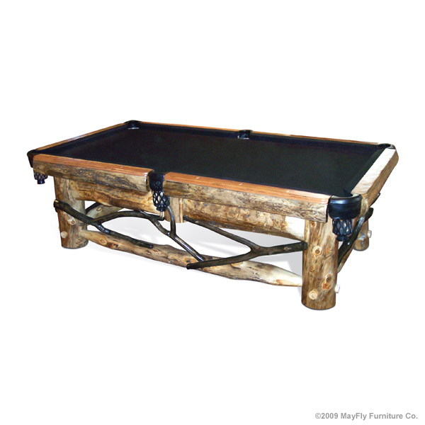 Make a statement with one of our finely crafted rustic pool tables. Our log and timber pool tables compliment any mountain home. We use only the best materials in building our tables. From pressure treated laminated wood for the frame/cabinet, ensuring strength. To our 3 piece, 1 inch, Italian/Brazilian slate. Which is finished with tournament grade cushions, felt and pockets. Once your rustic pool table is in place, complete your game room with a log poker table or dartboard.