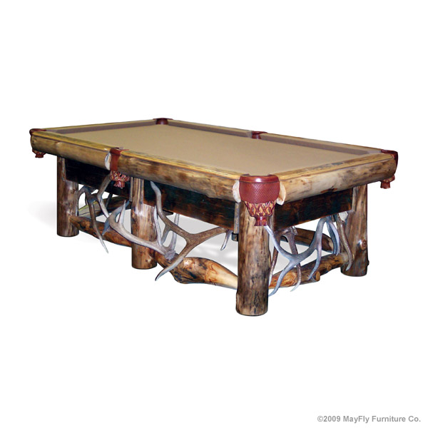 Make a statement with one of our finely crafted rustic pool tables. Our log and timber pool tables compliment any mountain home. We use only the best materials in building our tables. From pressure treated laminated wood for the frame/cabinet, ensuring strength. To our 3 piece, 1 inch, Italian/Brazilian slate. Which is finished with tournament grade cushions, felt and pockets. Once your rustic pool table is in place, complete your game room with a log poker table or dartboard.