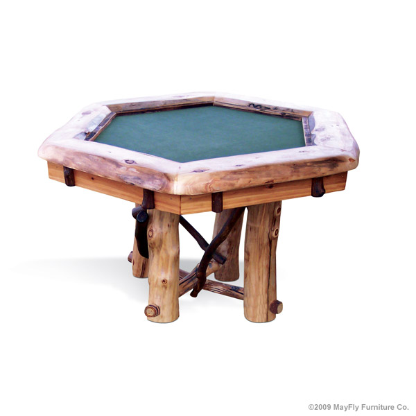 Make a statement with one of our finely crafted rustic pool tables. Our log and timber pool tables compliment any mountain home. We use only the best materials in building our tables. From pressure treated laminated wood for the frame/cabinet, ensuring strength. To our 3 piece, 1 inch, Italian/Brazilian slate. Which is finished with tournament grade cushions, felt and pockets. Once your rustic pool table is in place, complete your game room with a log poker table or dartboard.