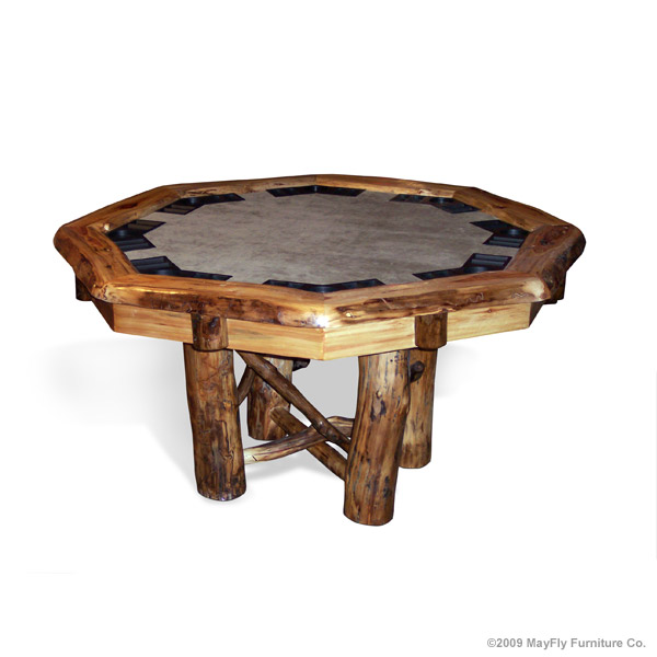 Make a statement with one of our finely crafted rustic pool tables. Our log and timber pool tables compliment any mountain home. We use only the best materials in building our tables. From pressure treated laminated wood for the frame/cabinet, ensuring strength. To our 3 piece, 1 inch, Italian/Brazilian slate. Which is finished with tournament grade cushions, felt and pockets. Once your rustic pool table is in place, complete your game room with a log poker table or dartboard.